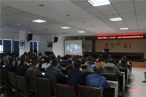 為持續(xù)深化“不忘初心、牢記使命”主題教育,營(yíng)造濃厚的清正廉潔企業(yè)氛圍,11月22日,城投公司組織觀看主題教育警示教育片《一念之誤》。公司部門主管和子公司副部長(zhǎng)以下人員約80人參加。