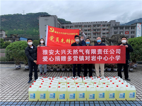 4月4日,城投公司下屬子公司雅安大興天然氣有限責(zé)任公司到多營鎮(zhèn)對(duì)巖中心小學(xué)開展愛心捐贈(zèng)活動(dòng),此次活動(dòng)共捐贈(zèng)消毒液50余桶,主要用于校園內(nèi)防疫消殺,確保學(xué)校安全復(fù)學(xué)。