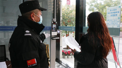 此次演練設定在上午9點,城投公司辦公樓入口,被紅外線體溫儀檢測出一名體溫異常的辦事人員,且檢查健康碼顯示黃碼。
