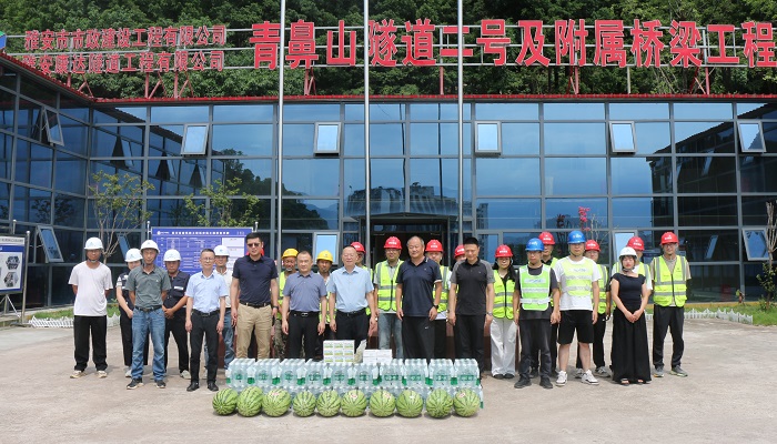 為切實(shí)做好高溫天氣下一線職工的勞動(dòng)保護(hù)和防暑降溫工作,連日來,城投公司黨委書記、董事長羅倫全,黨委副書記、董事、總經(jīng)理范勇分別帶隊(duì),深入青鼻山隧道二號(hào)及附屬橋梁工程、雅州印項(xiàng)目施工現(xiàn)場,親切慰問奮戰(zhàn)在酷暑中的一線建設(shè)者。公司黨委委員、副總經(jīng)理茍剛,黨委委員、副總經(jīng)理瞿橫空陪同慰問。