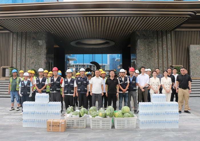 慰問組一行深入施工現(xiàn)場,為奮戰(zhàn)在高溫下的一線建設(shè)者送去了礦泉水、藿香正氣液等防暑降溫物資,向他們致以誠摯的問候和衷心的感謝,并詳細(xì)詢問了大家的工作生活狀況和防暑措施落實(shí)情況,反復(fù)叮囑大家要?jiǎng)谝萁Y(jié)合,務(wù)必把身體健康和生命安全放在首位,科學(xué)合理安排作息時(shí)間,嚴(yán)格落實(shí)各項(xiàng)防暑降溫措施,確保平安度夏。