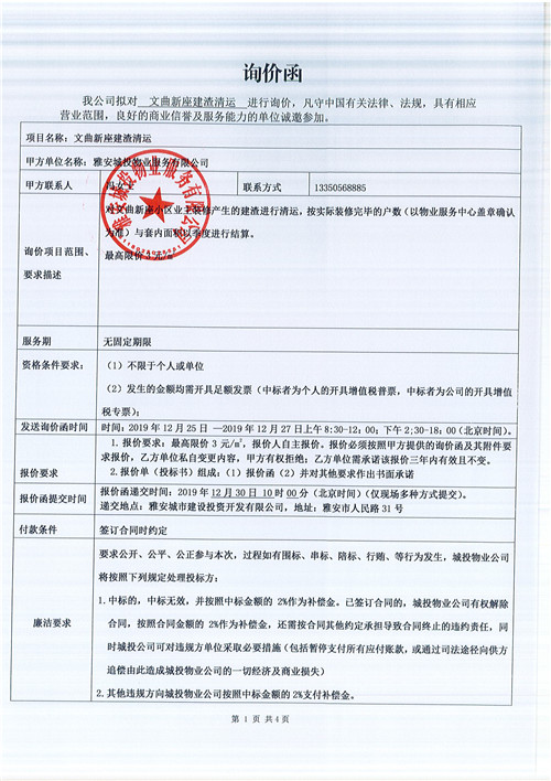 文曲新座建渣清運(yùn)詢價(jià)函.doc