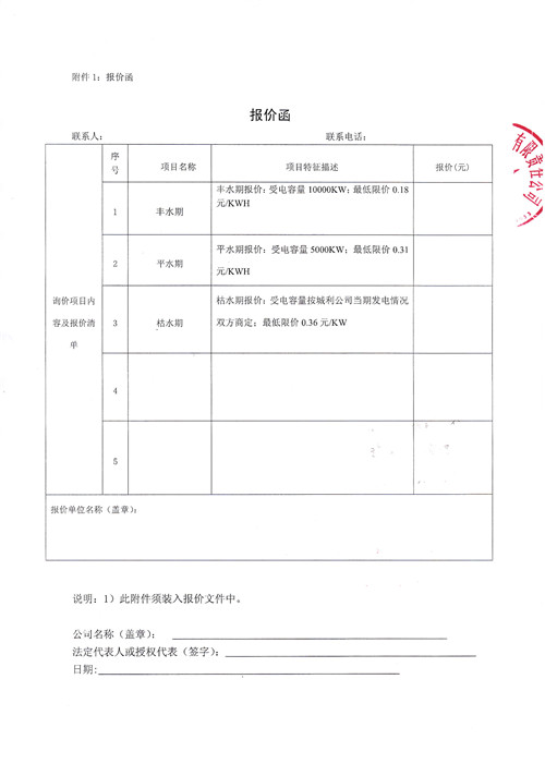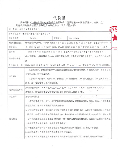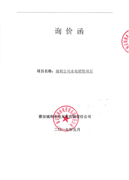 城利公司水電銷售項(xiàng)目詢價(jià)函