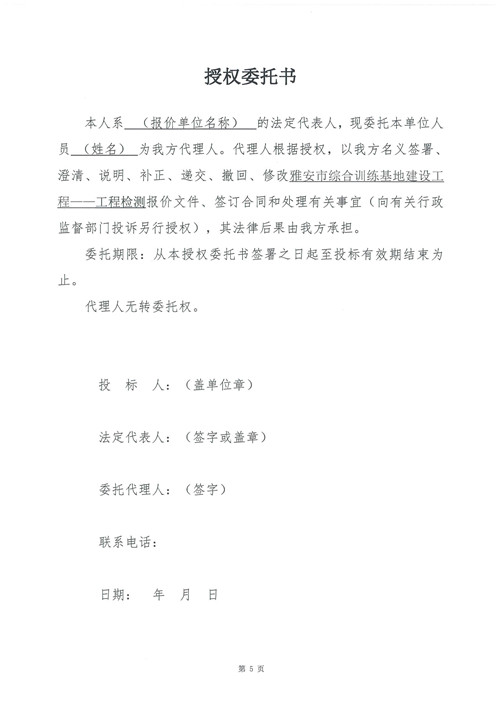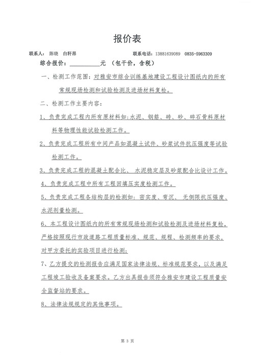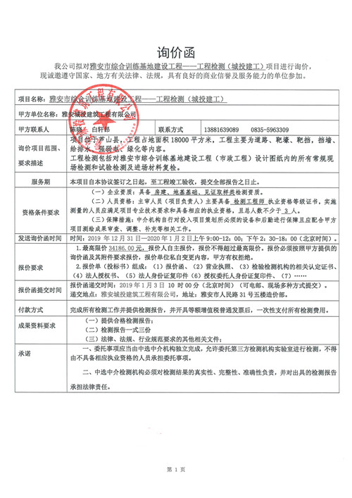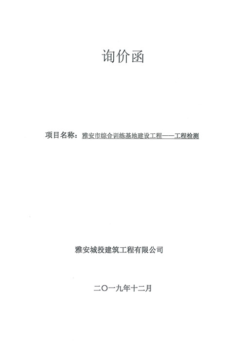 雅安市綜合訓(xùn)練基地建設(shè)工程——工程檢測(cè)詢價(jià)函