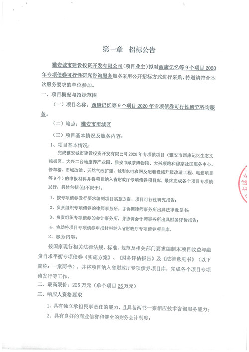 西康記憶等9個項目2020年專項債券可行性研究咨詢服務(wù)招標公告