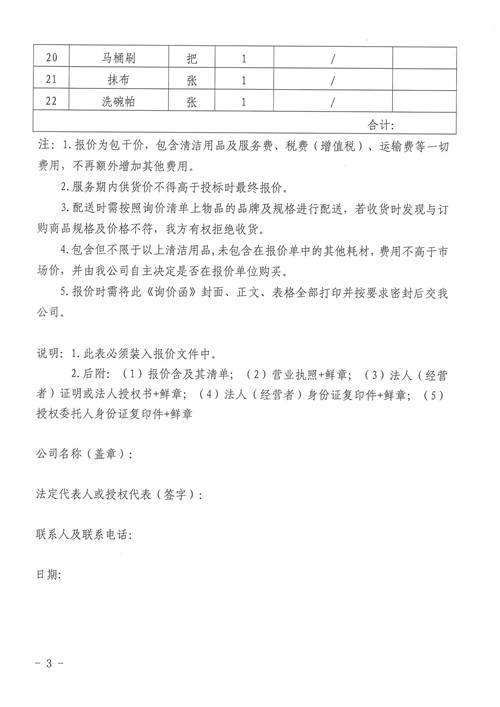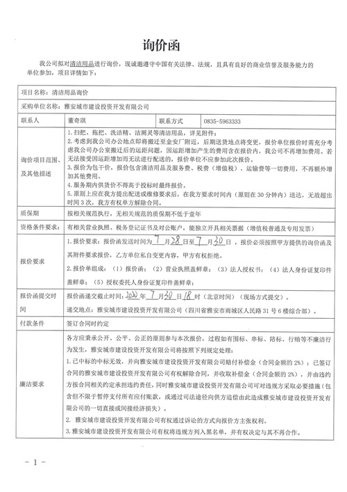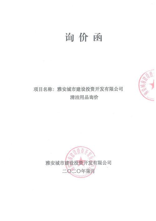 雅安城市建設(shè)投資開(kāi)發(fā)有限公司清潔用品詢價(jià)函