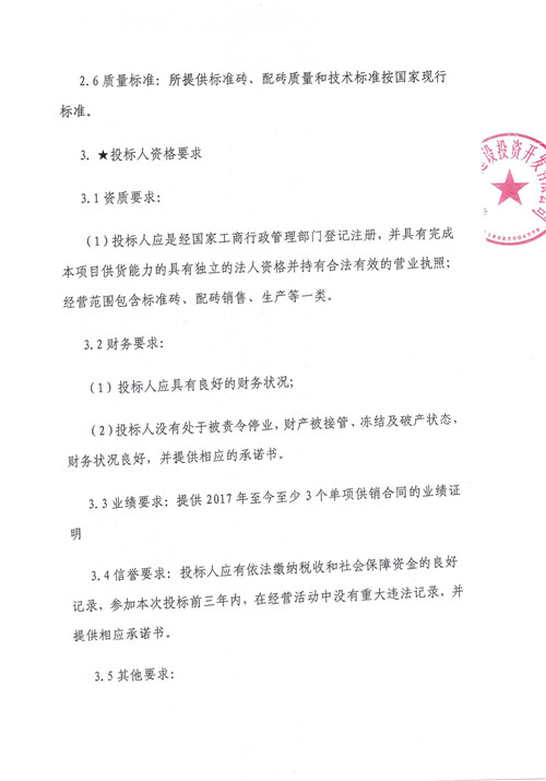 2020年9月-2021年9月雅安城市建設(shè)投資開發(fā)有限公司標(biāo)準(zhǔn)磚、配磚等集中采購 競(jìng)爭(zhēng)磋商公告