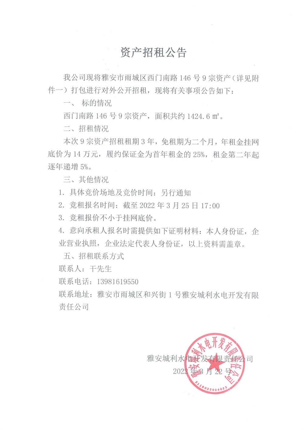 資產(chǎn)招租公告
