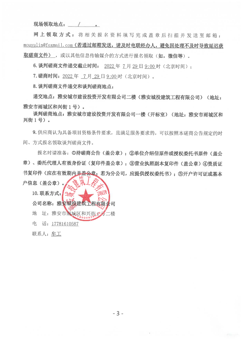 蒙頂壹號項目主樓、總坪、北側(cè)大門等幕墻鋼結(jié)構(gòu)工程(第二次)談判磋商公告
