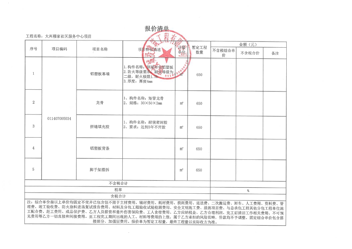大興穆家社區(qū)服務(wù)中心項目鋼結(jié)構(gòu)外包鋁塑板競價公告(第三次)