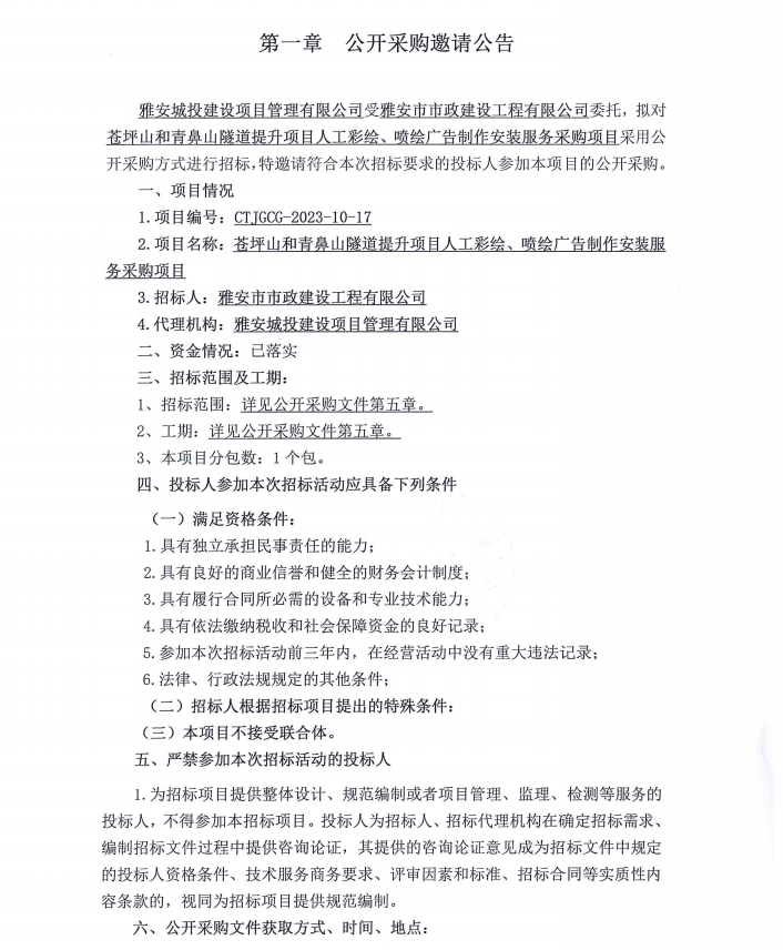 蒼坪山和青鼻山隧道提升項(xiàng)目人工彩繪、噴繪廣告制作安裝服務(wù)采購(gòu)項(xiàng)目公開(kāi)采購(gòu)邀請(qǐng)公告