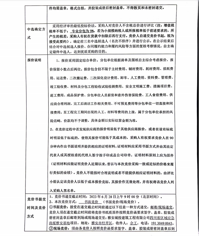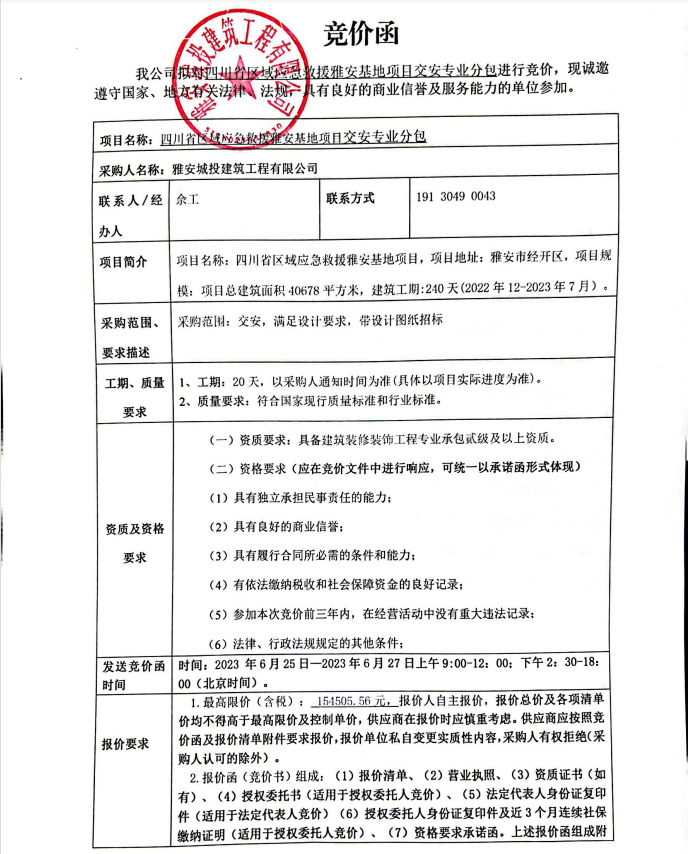四川省區(qū)域應急救援雅安基地項目交安專業(yè)分包競價公告