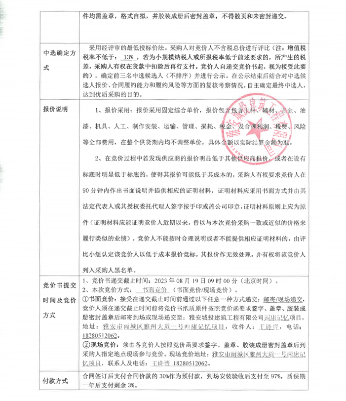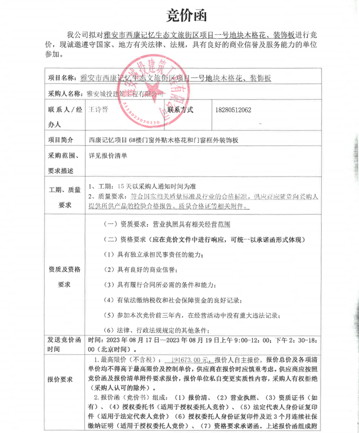 雅安市西康記憶生態(tài)文旅街區(qū)項目一號地塊木格花、裝飾板采購競價公告
