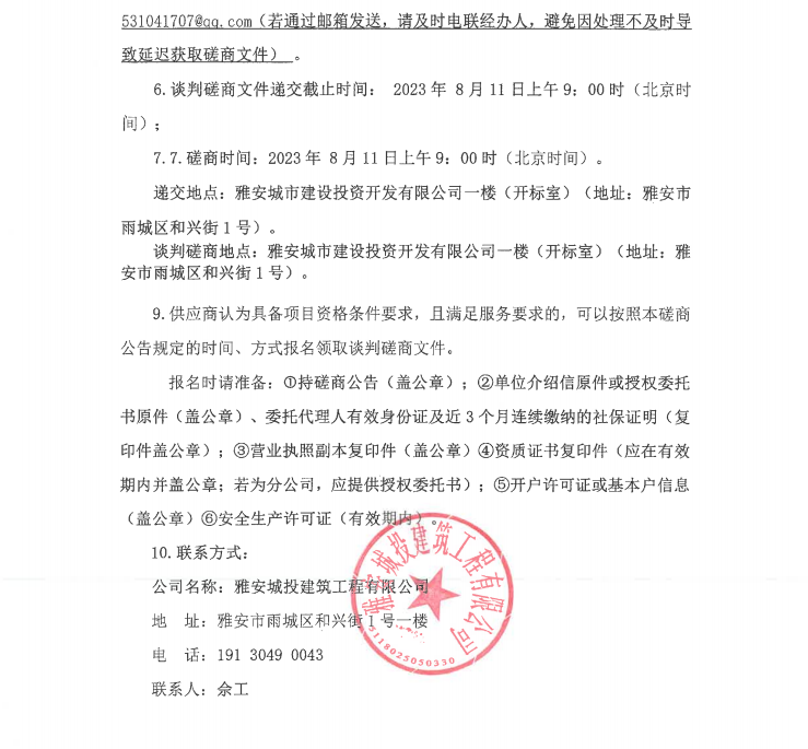 四川省區(qū)域應(yīng)急救援雅安基地項目停機庫鋼結(jié)構(gòu)專業(yè)分包談判磋商公告