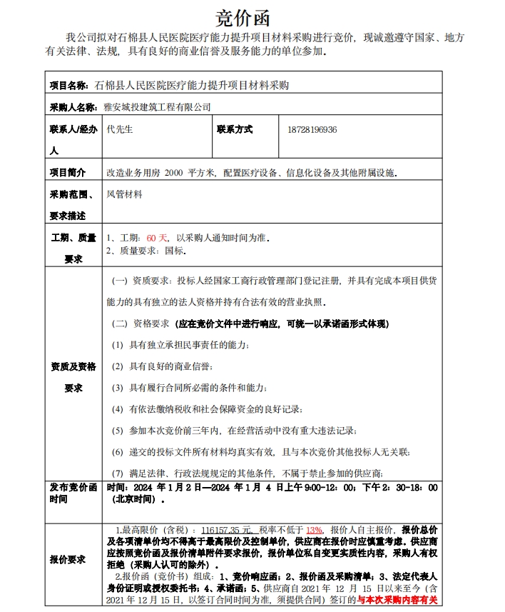 石棉縣人民醫(yī)院醫(yī)療能力提升項(xiàng)目材料采購(gòu)競(jìng)價(jià)公告