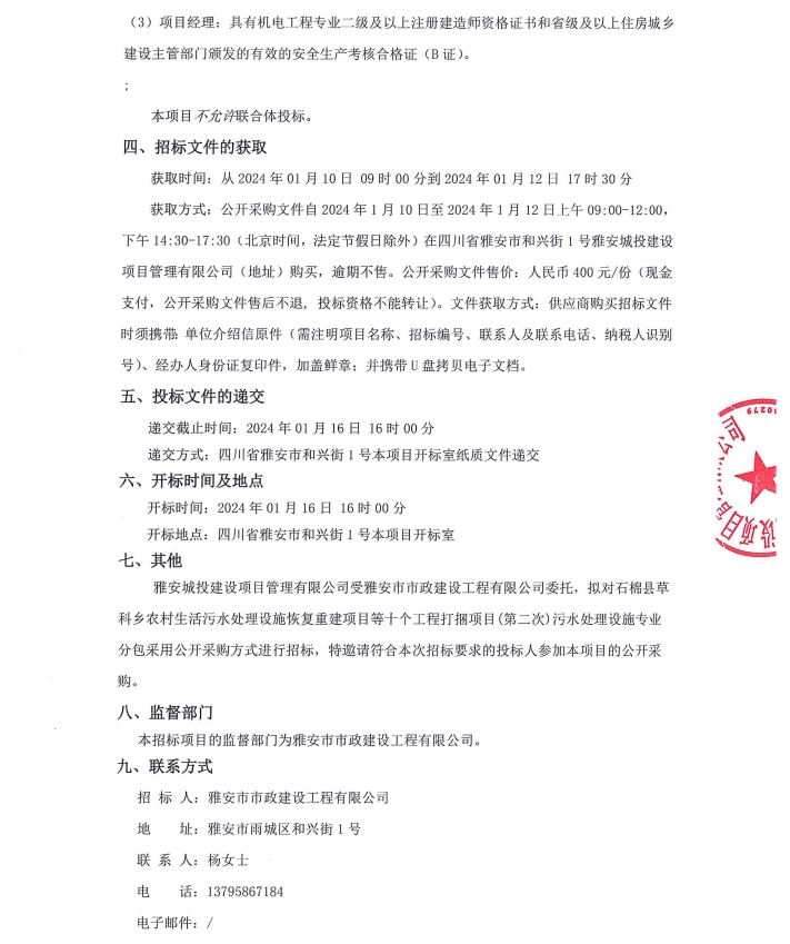 石棉縣草科鄉(xiāng)農(nóng)村生活污水處理設(shè)施恢復(fù)重建項(xiàng)目等十個(gè)工程打捆項(xiàng)目(第二次)污水處理設(shè)施專業(yè)分包采購公告