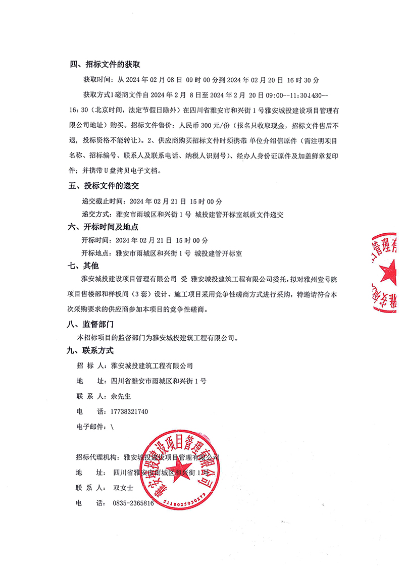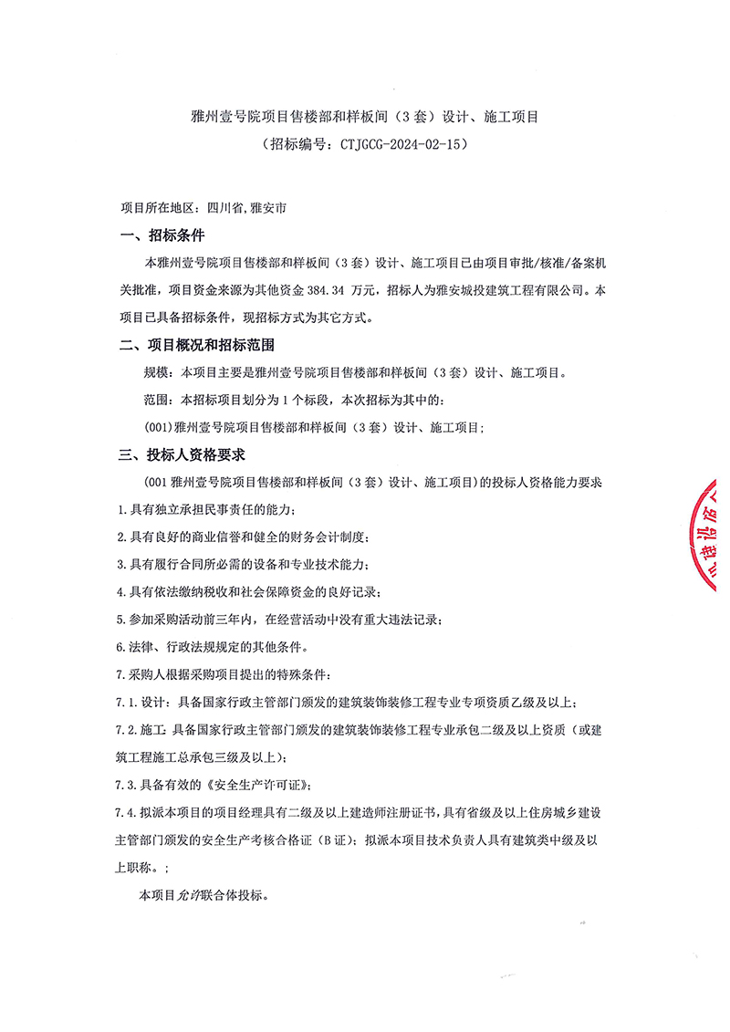 雅州壹號(hào)項(xiàng)目售樓部和樣板間(3套)設(shè)計(jì)、施工項(xiàng)目招標(biāo)公告