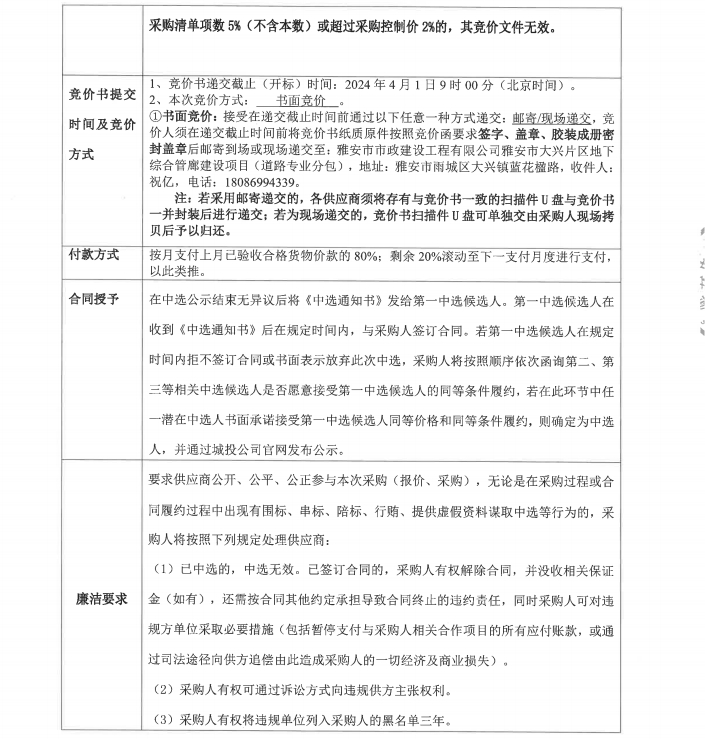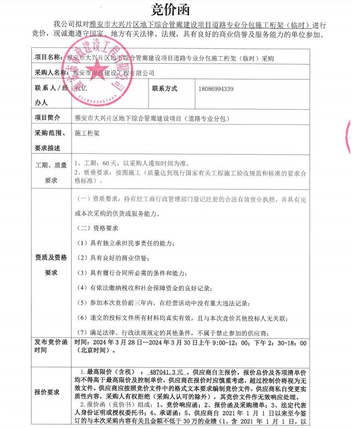 雅安市大興片區(qū)地下綜合管廊建設(shè)項(xiàng)目道路專業(yè)分包施工桁架(臨時)采購競價公告