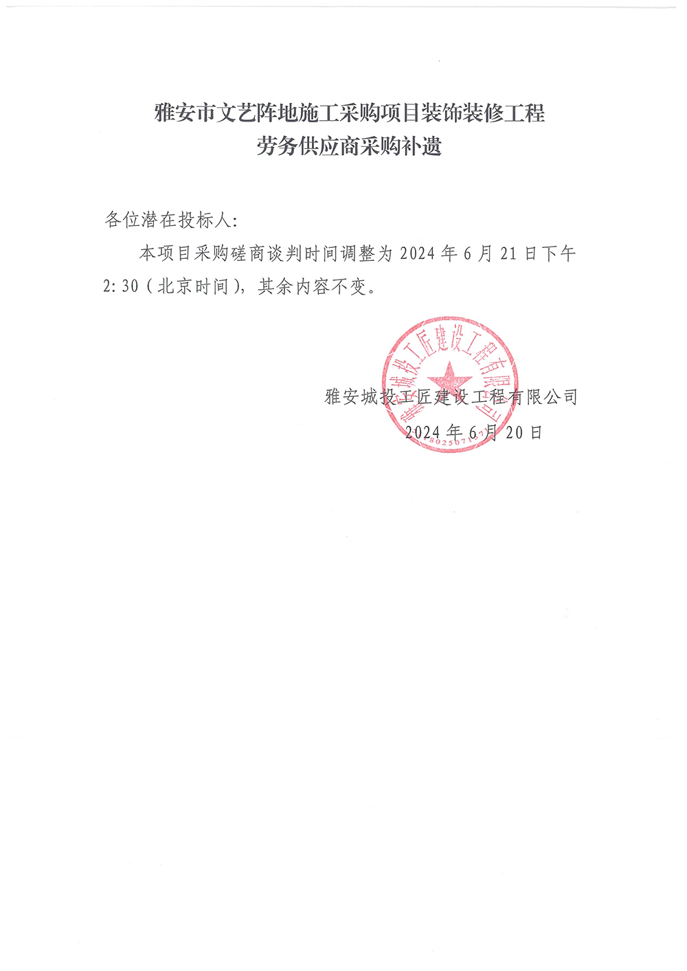 雅安市文藝陣地施工采購項目裝飾裝修工程勞務供應商采購補遺