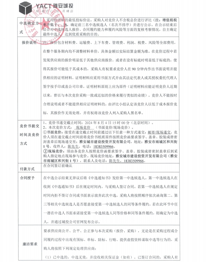 雅安市大興生態(tài)旅游建設(shè)項(xiàng)目架管及配件租賃競價(jià)公告
