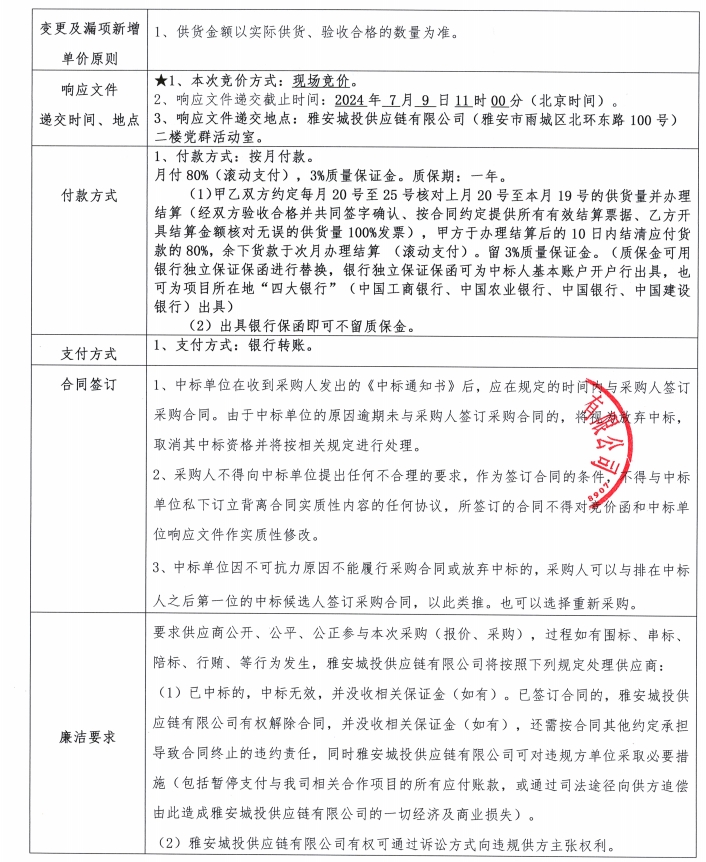 雅州壹號院直飲水管材及配件材料采購競價公告